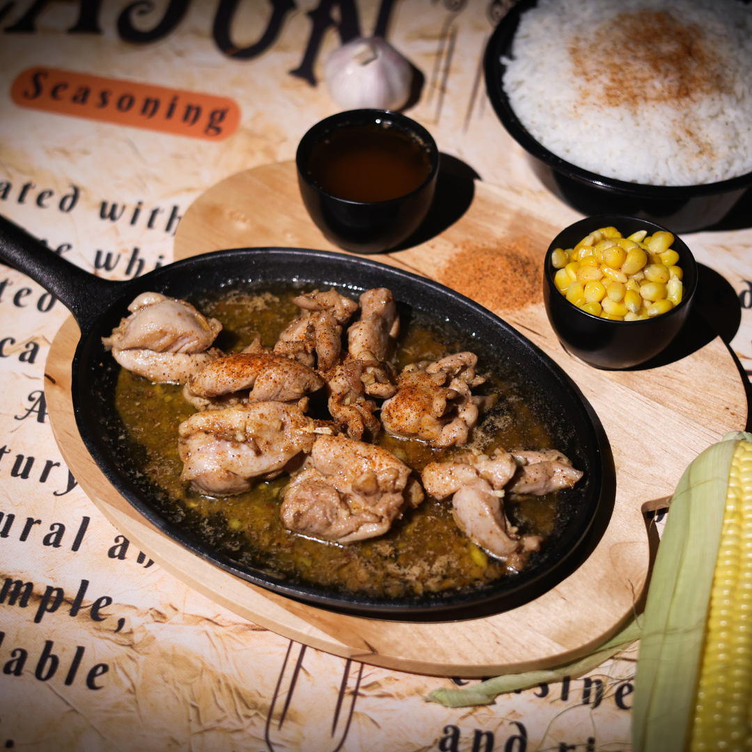 sizzling grilled chicken boonless breast served with rice & buttered corn kernels